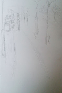 I was challenging myself creating this piece, taking into consideration of the atmosphere surrounding the figure, the place shes positioned, looking at the Life model scenery as a whole. I wanted to created the sense of space between myself and the room, capturing my experience and my peers.